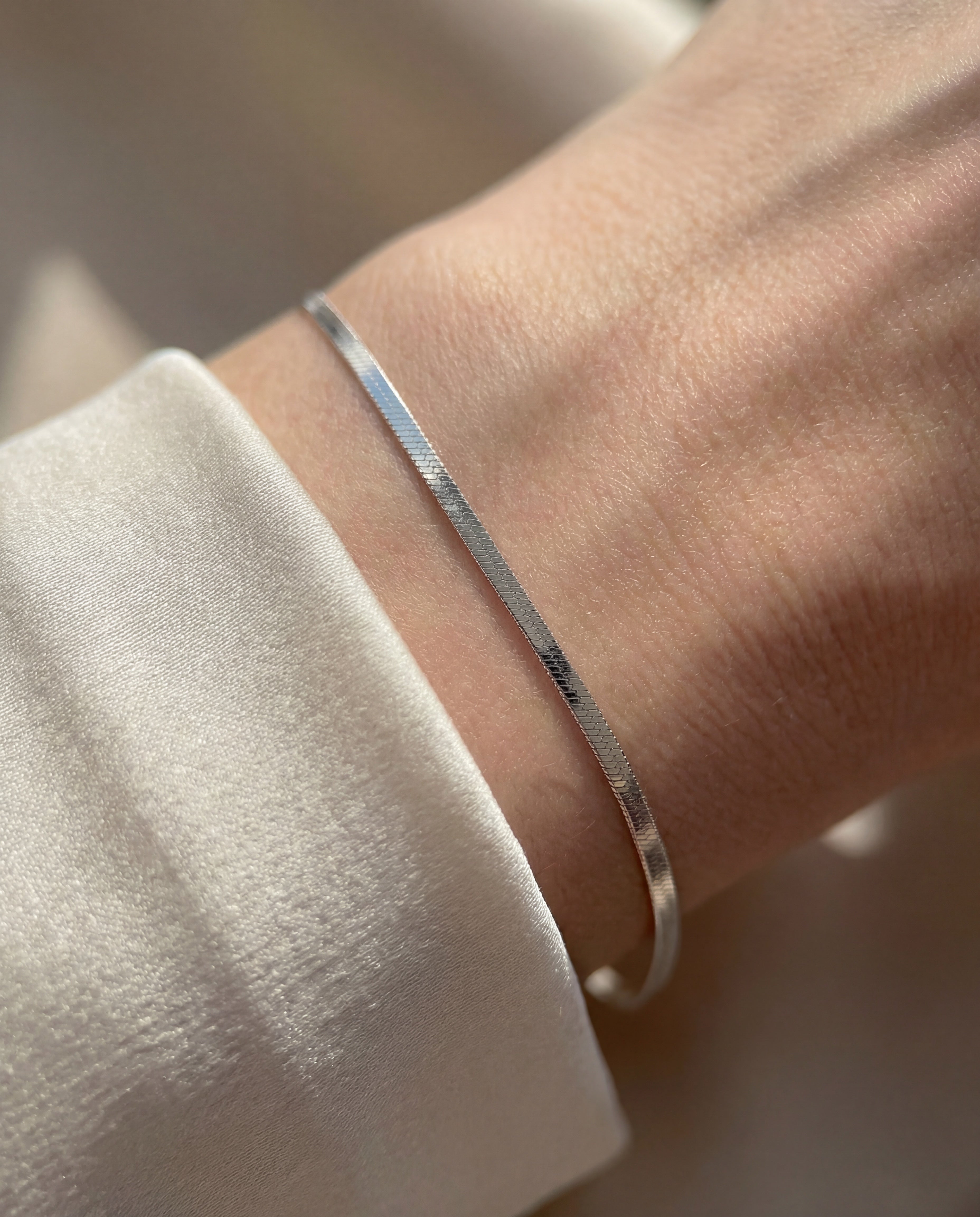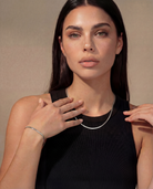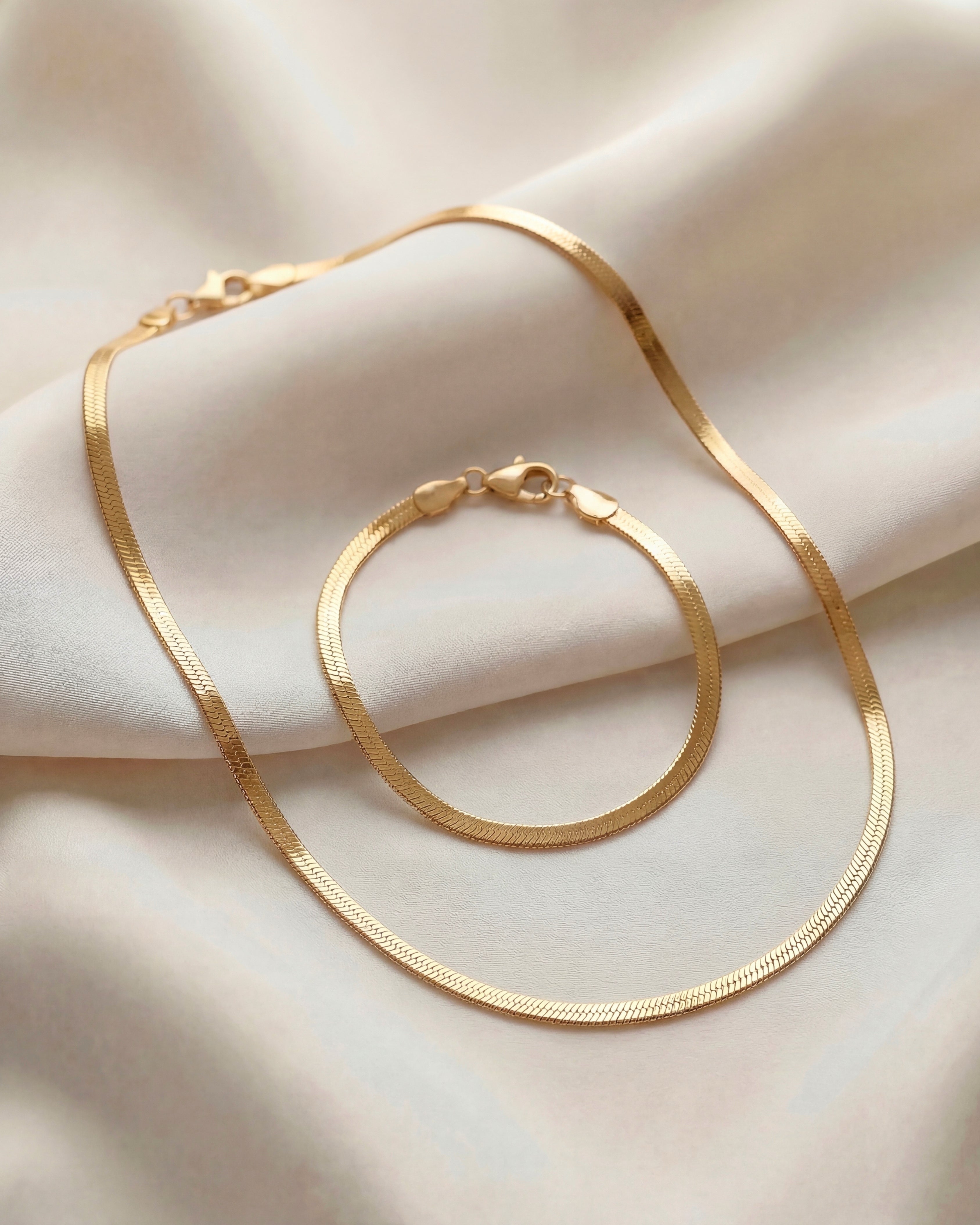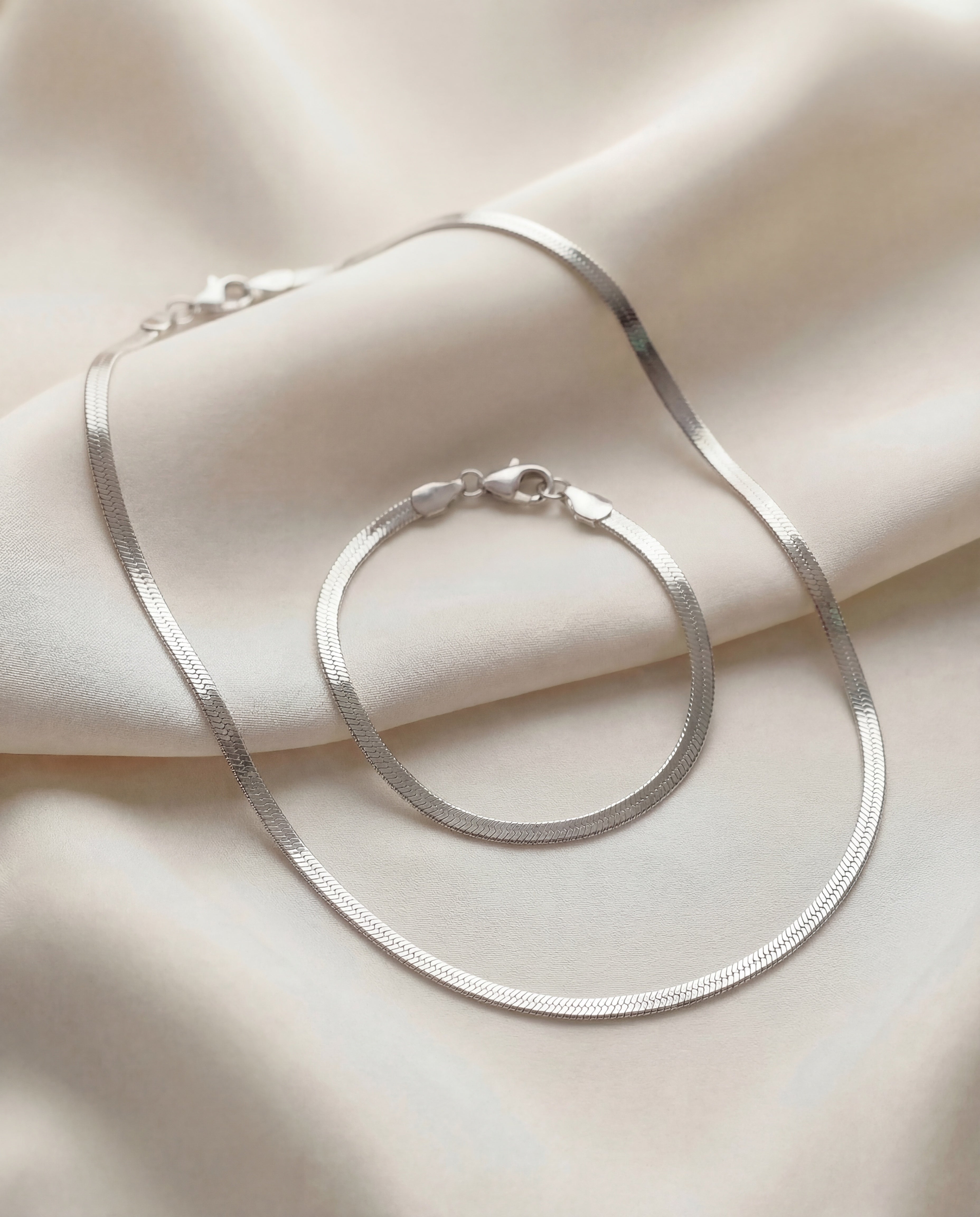 The necklace and bracelet are made in the same clean design and match each other without feeling overstyled. It gives a calm, thoughtful feel as soon as you put it on.