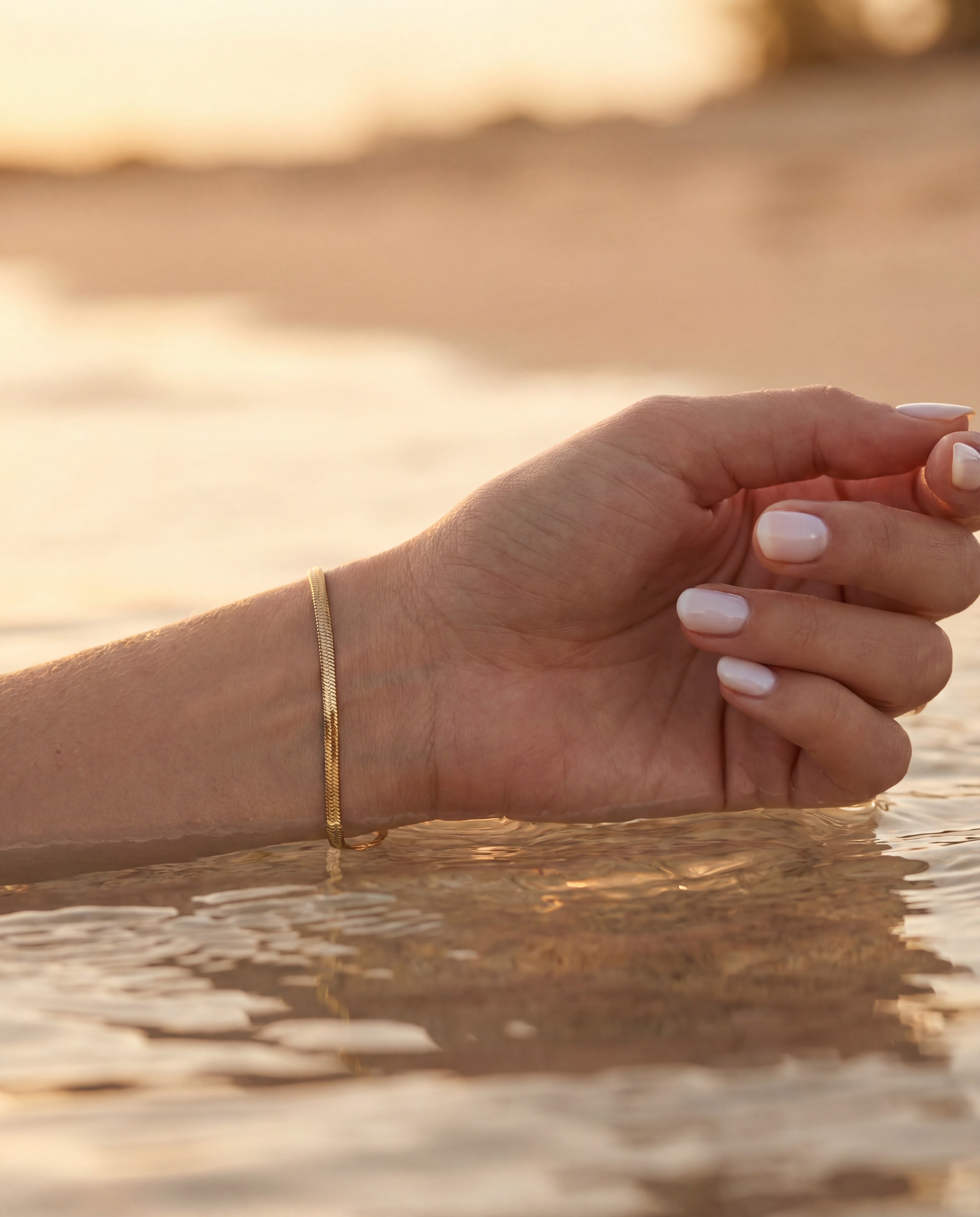 Made from stainless steel and also available with 14K gold plating. Designed for everyday wear – withstands water, sweat and daily life without losing its shine.