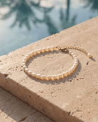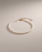 Den tunna kedjan i 14K guldpläterat rostfritt stål ger en fin kontrast till pärlorna och gör armbandet lika självklart till vardags som till mer uppklädda tillfällen.