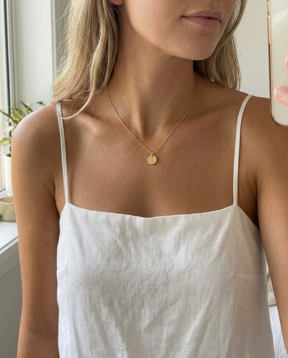 Halsbandet är tillverkat i slitstarkt rostfritt stål och pläterat med 18K guld eller silverfinish. Materialen är noggrant utvalda för att vara hållbara, hudvänliga och färgbeständiga.